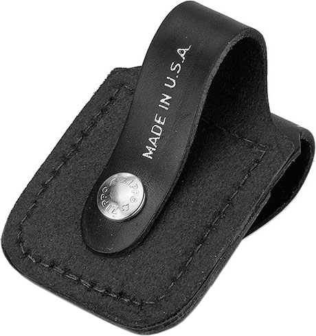 Чёрный чехол из натуральной кожи для классической зажигалки Zippo. Защитит Вашу ветроустойчивую зажигалку Zippo от повреждений, крепится к ремню высотой до 5 см посредством кожаной петли на задней части чехла. Чехол упакован в чёрную оригинальную коробку Zippo.