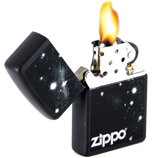 • Полноцветное изображение звездного неба, логотип Zippo