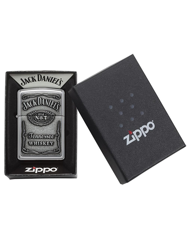 Бензиновая зажигалка Zippo 250 JD 427 Jack Daniels PewterEmblem High Polish Chrome, в целях безопасности, поступает в продажу незаправленной, поэтому топливо в удобной для вас расфасовке покупается отдельно.Рекомендовано использование только натурального бензина зиппо.