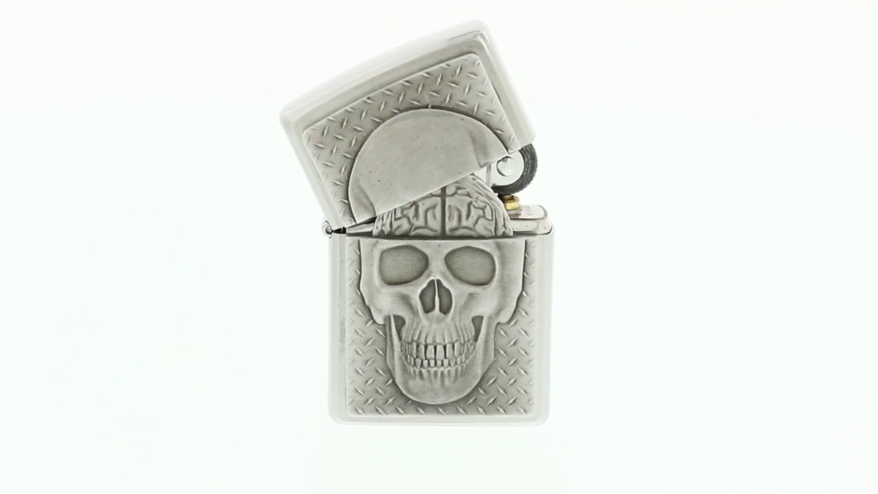 Zippo Skull with Brain Emblem Brushed Chrome 29818