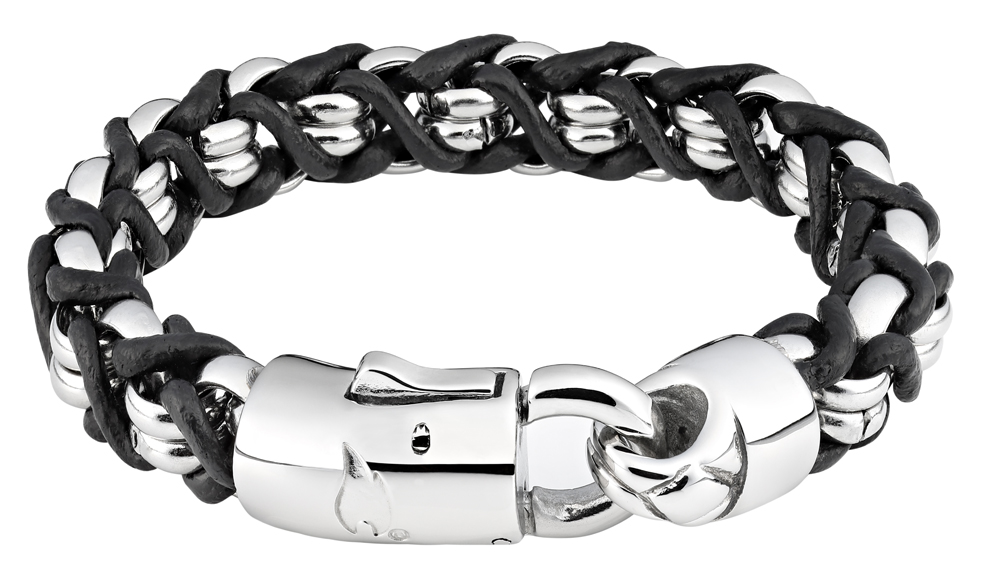 Браслет ZIPPO, чёрно-серебристый, нержавеющая сталь/натуральная кожа, 22×1,1×1 см