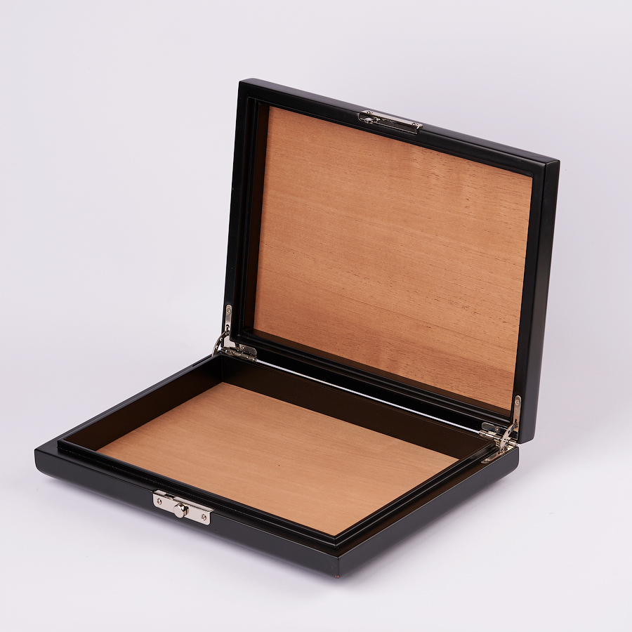 Acest Humidor de o capacitate de aproximativ 20 de tigari de foi te va ajuta sa iti pastrezi tigarile de foi in conditii exceptionale. Higrometrul digital iti va indica cu precizie umiditatea din interiorul lui. Pentru a-ti gestiona cat mai bine tigarile de foi, acest humidor vine echipat cu un divizor din cedru spaniol pentru a delimita tigarile de foi in functie de brand, culoare, marime etc. Totodata el este prevazut si cu o tavita din cedru spaniol la fel cu un divizor din cedru spaniol.