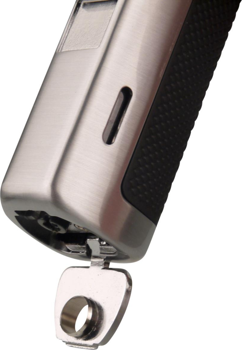 Bricheta se potrivește perfect în mână, astfel încât capacul poate fi deschis doar cu degetul mare și aprins cu o flacără cu 3 jeturi. Intensitatea și dimensiunea flăcării pot fi ajustate după dorință, făcând bricheta ideală pentru trabucuri.