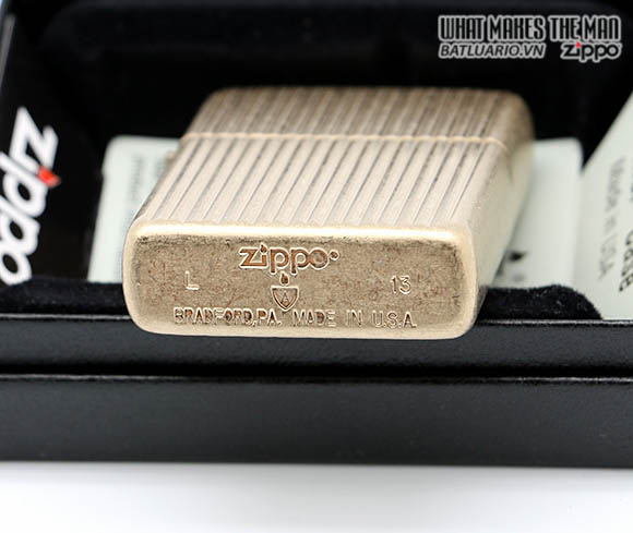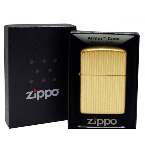 Simplu și șic, acesta este modul în care acest nou produs poate fi descris pe scurt în gama de brichete Zippo întărite. Alama, cu dungi verticale de aur care îi conferă un aspect de textură, această brichetă este, de asemenea, cu două fețe.