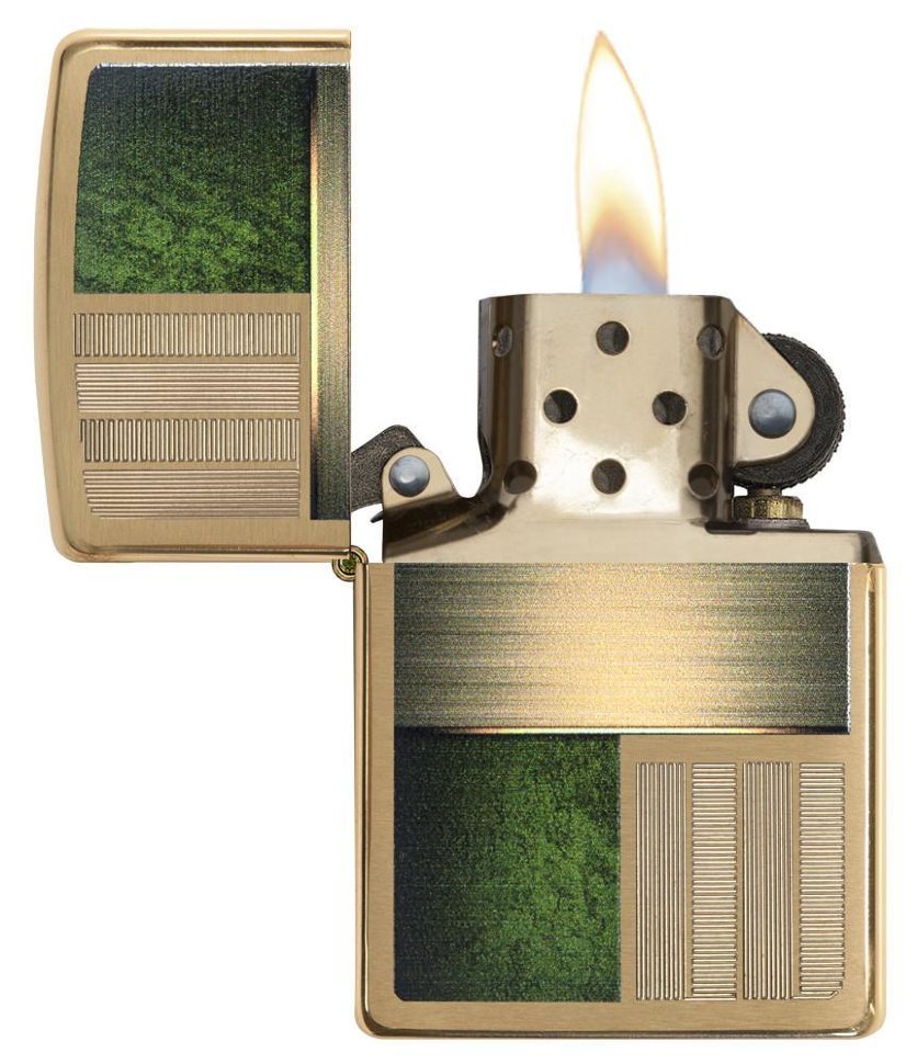 O brichetă elegantă, cu blocuri de culori auto-gravate, captivează prin designul său de cupru și textură verde. Vine într-o cutie din materiale ecologice. Pentru performanțe optime, vă recomandăm să utilizați combustibilul original Zippo de înaltă calitate.