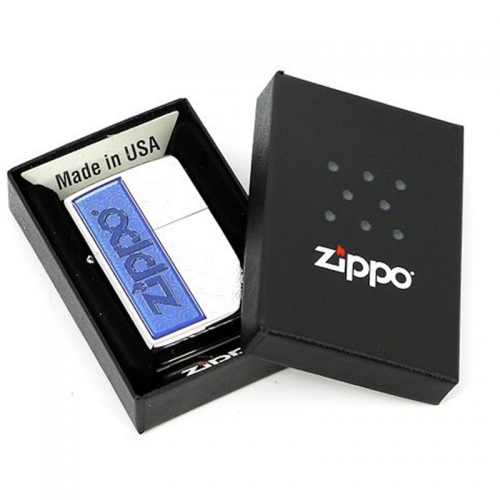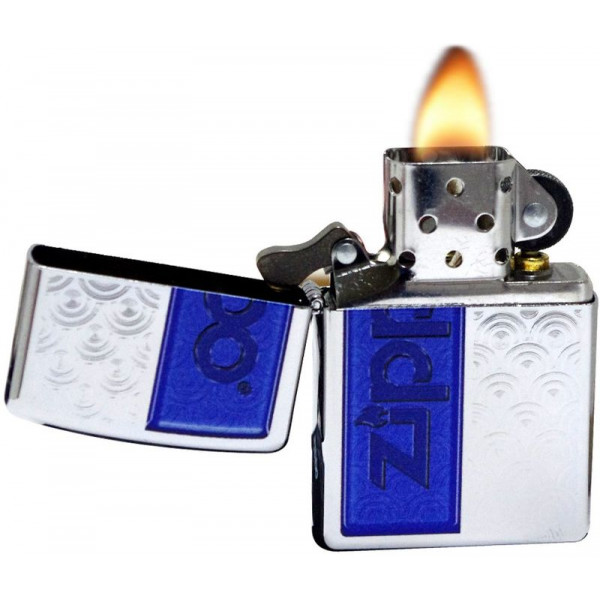 Adauga la colecția dvs. acest vânt special brichetă acoperit de mare polonez Chrome. Pe partea stângă a siglei Zippo descrie un vertical pe un fond albastru, pe partea dreapta si este decorat cu bucle cu model. Ea vine într-o cutie de cadou creat din materiale ecologice. Pentru performanțe optime, vă recomandăm să umple un combustibil de primă clasă Zippo.