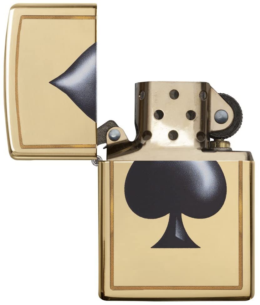 Bricheta Zippo Classic High Brass din alamă poate fi un cadou ideal pentru un iubitor de jocuri de cărți sau obiecte exclusive. Corpul de alamă este decorat cu un strat de culoare auriu lucios, care este protejat de deteriorare și, de asemenea, previne corodarea și oxidarea. Partea din față este decorată cu un desen mare al costumului de spade.