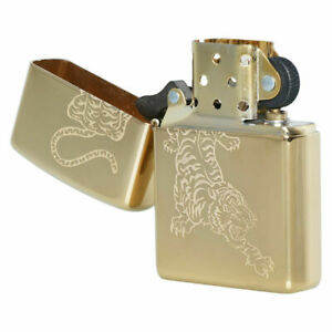 Bricheta Zippo Tattoo Tiger Design 29884 este o brichetă de alamă cu o suprafață de alamă înaltă poloneză, în culoare aurie. Pe suprafața frontală a brichetei se află un desen al unui tigru. Model clasic rezistent la vânt